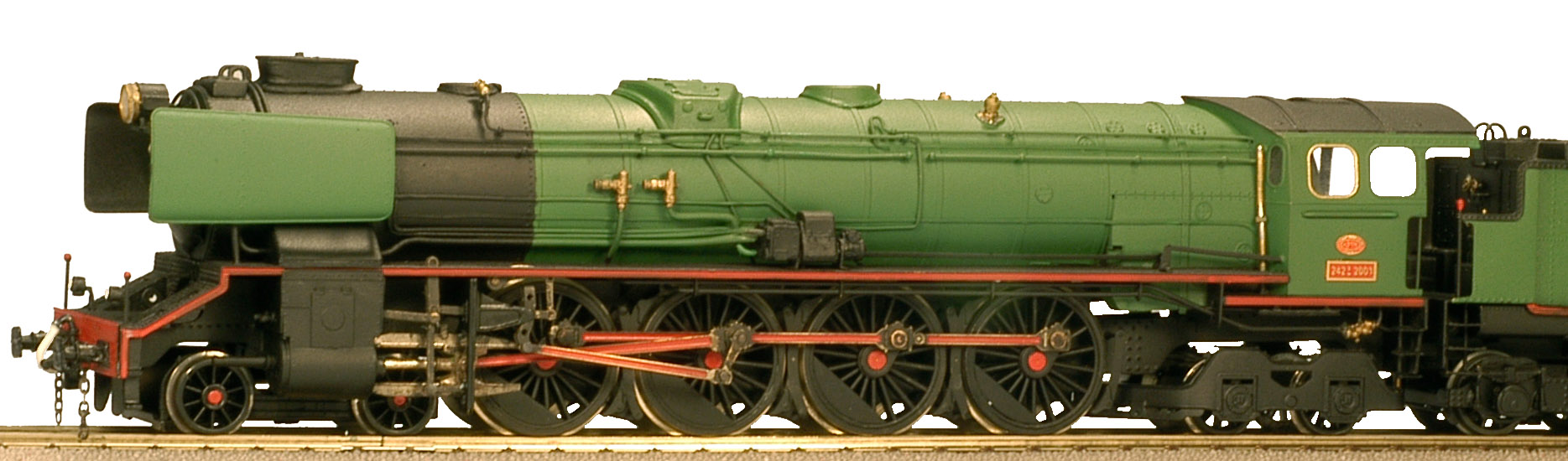 Locomotora vapor RENFE 242 confederación, construida integramente en latón, motorizada, montada y pintada a mano una por una.