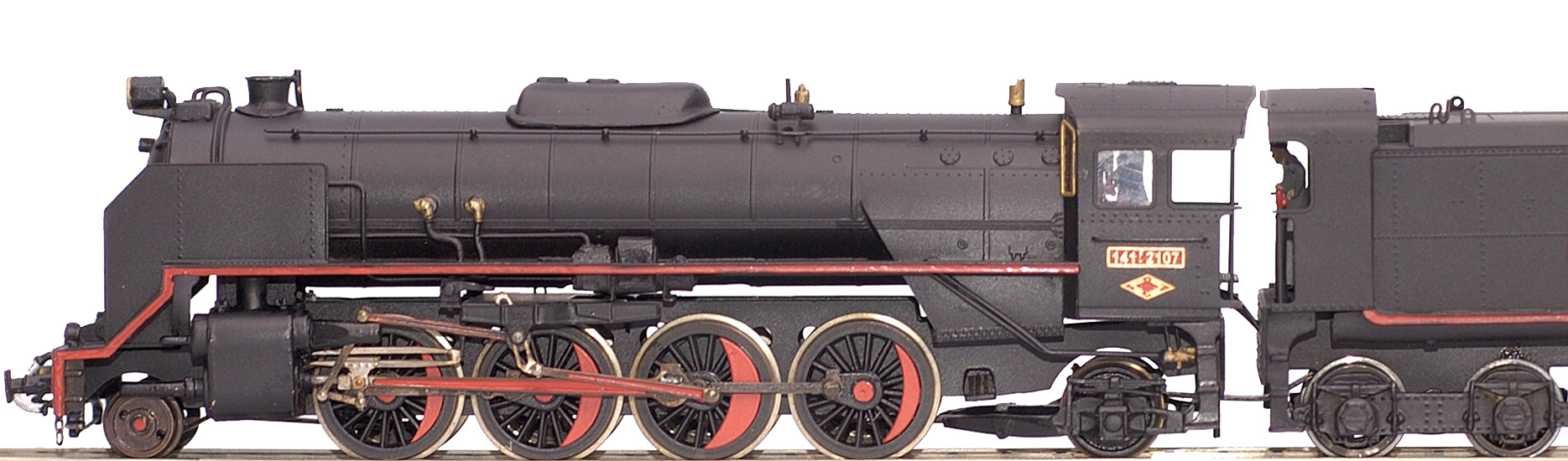 Locomotora vapor RENFE 141 Mikado, construida integramente en latón, motorizada, montada y pintada a mano una por una.