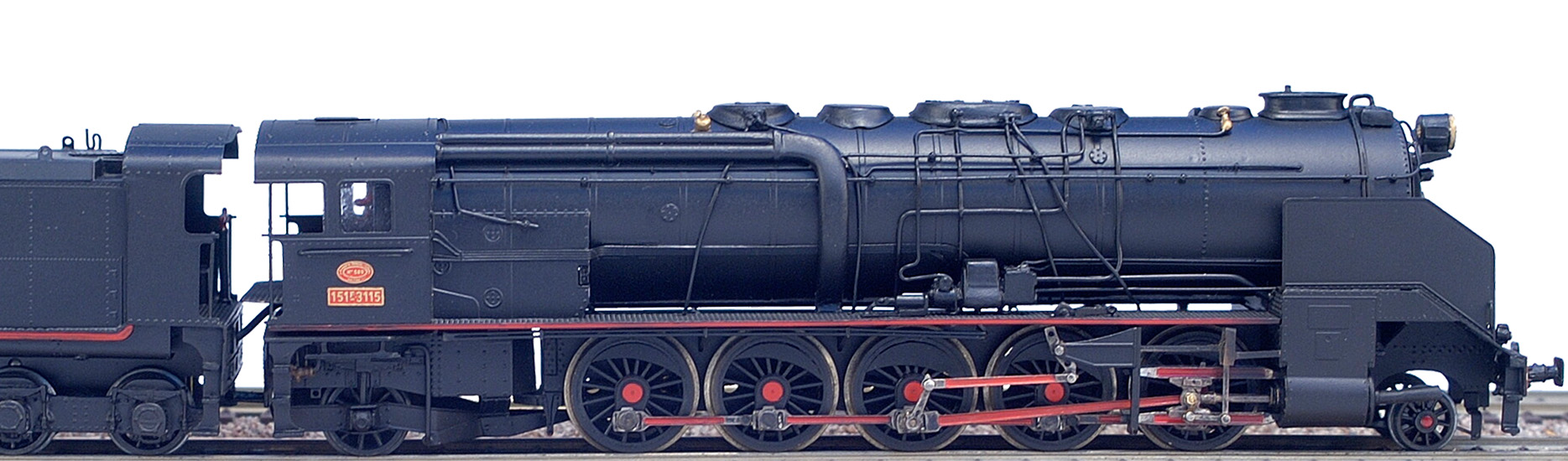Locomotora vapor RENFE 151 santa fe, construida integramente en latón, motorizada, montada y pintada a mano una por una.